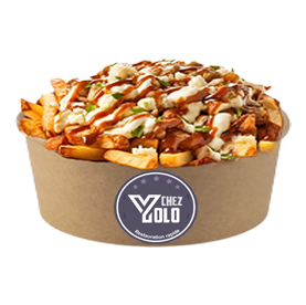 Riz basmati, sauce yolo maison, poulet, sauce piquante, oignons, frites.